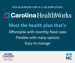 The Rowan County Chamber of Commerce is proud to announce a long-awaited new benefit for its members – small business health insurance. Through a new partnership between the NC Chamber and Blue Cross NC, chamber members can now access Carolina HealthWorks, an innovative health plan option designed specifically for small businesses, their employees, and their families.